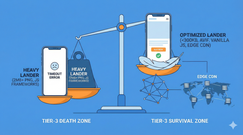 In Tier-1, you can afford a heavy React-based landing page with a video background. In Tier-3, if your page doesn’t load within 2.5 seconds, the user is gone. They are used to slow internet, but they won’t wait for your ad.