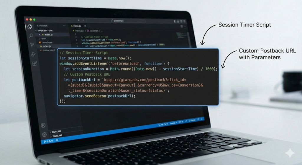 - Lander Scripts: Use a simple JS snippet to measure how long a user stays on the page and pass it to the tracker via a