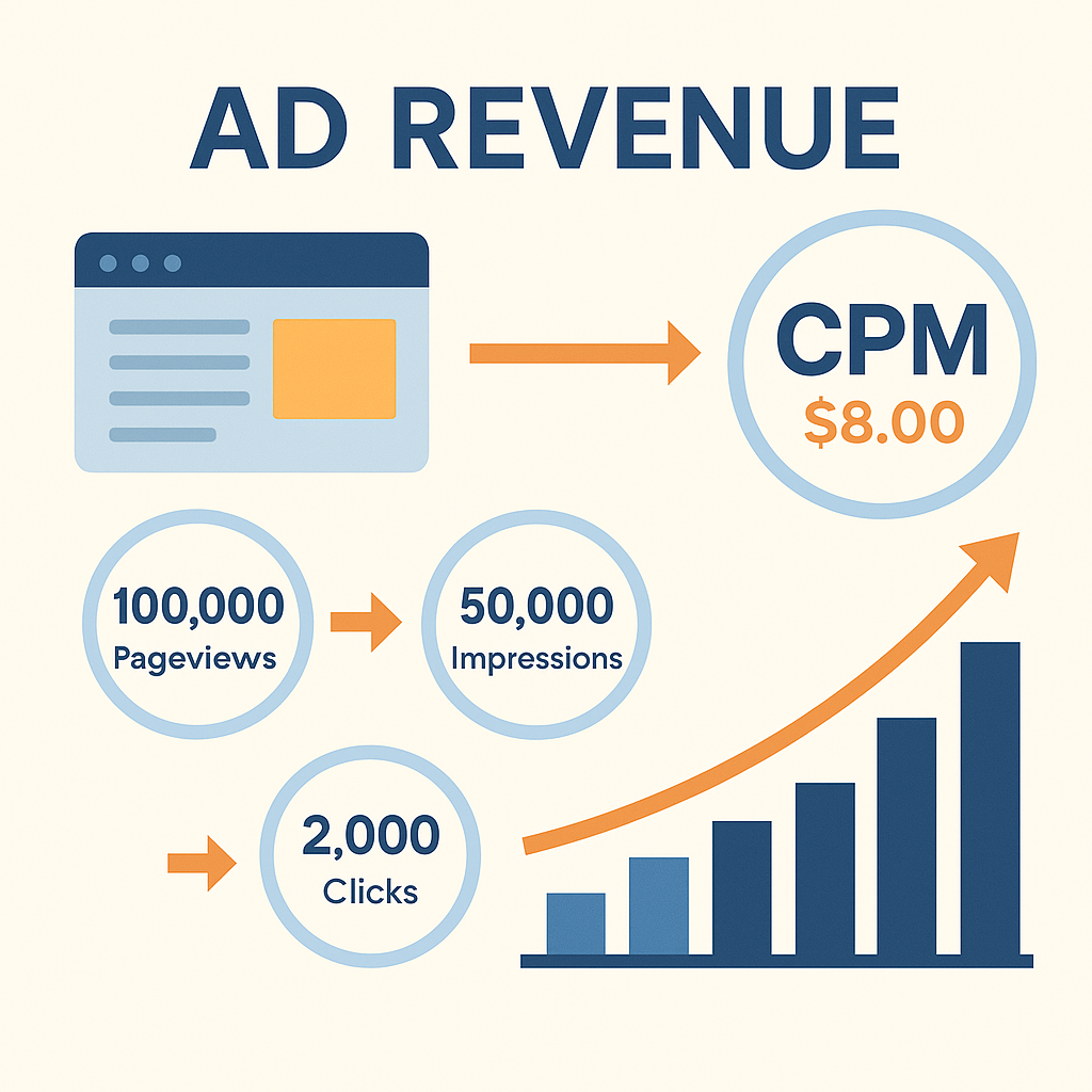 | RPM | Revenue per 1,000 pageviews | (Revenue / Pageviews) × 1000 | Evaluates page performance |